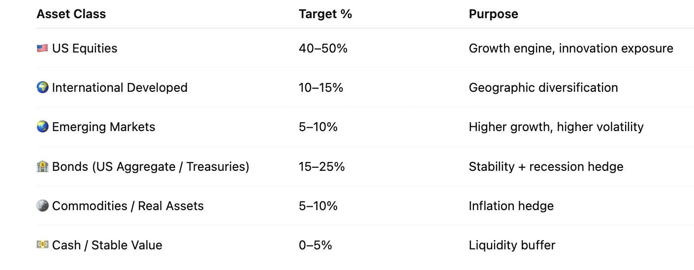 The disciplined framework we use to allocate retirement capital across US stocks, global markets, bonds, and real assets