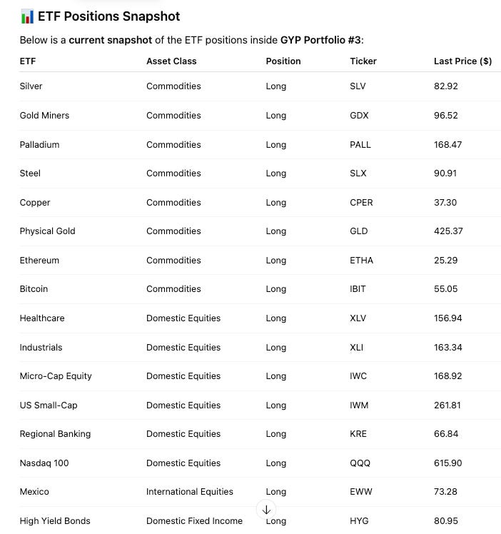 Portfolio #3 — GYP: ETF Income & Growth Alerts — is our answer.