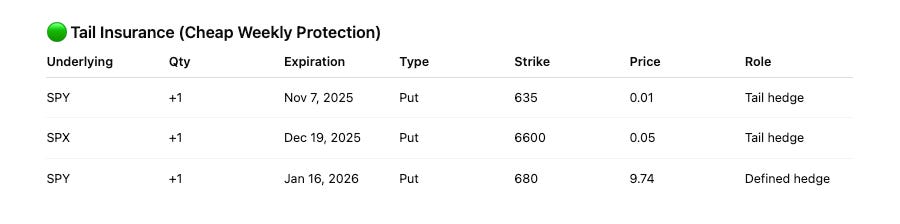 4️⃣ Tail Insurance: Cheap Weekly Puts