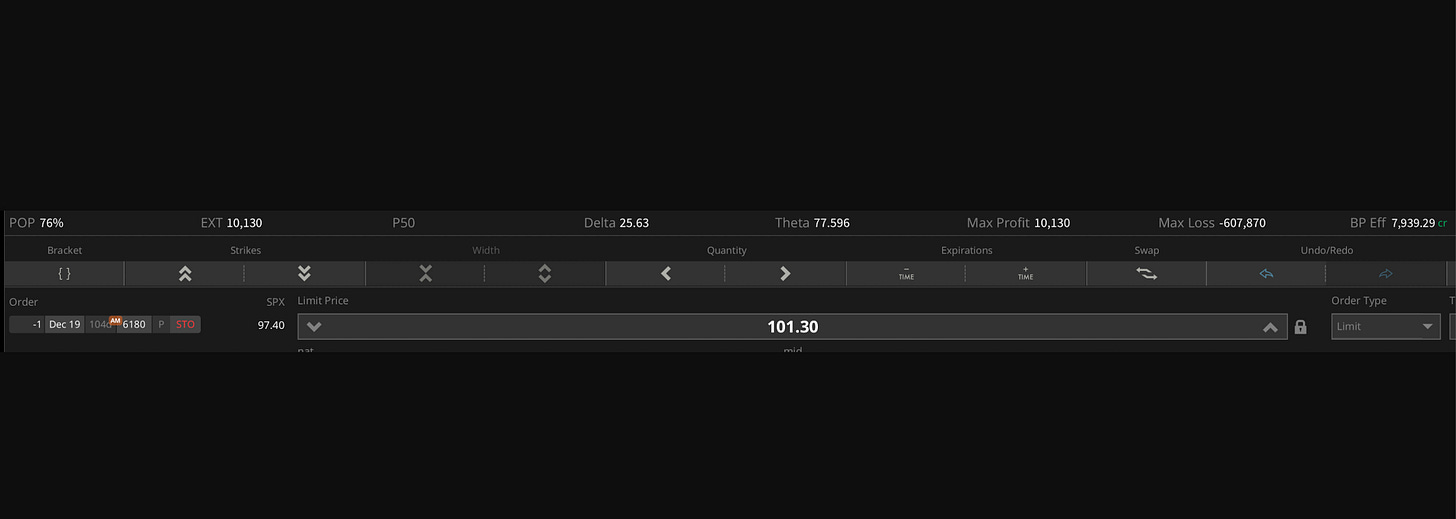 Sold 1 SPX 12/19/25 Put 6180.00 @ 101.30